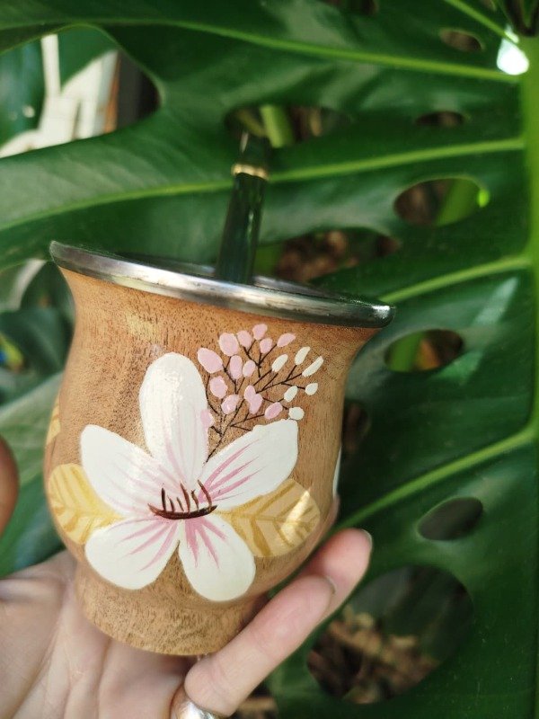 • Mate de algarrobo, modelo Camionero, con virola de acero inoxidable, incluye tambien, bombilla de aluminio a tono.