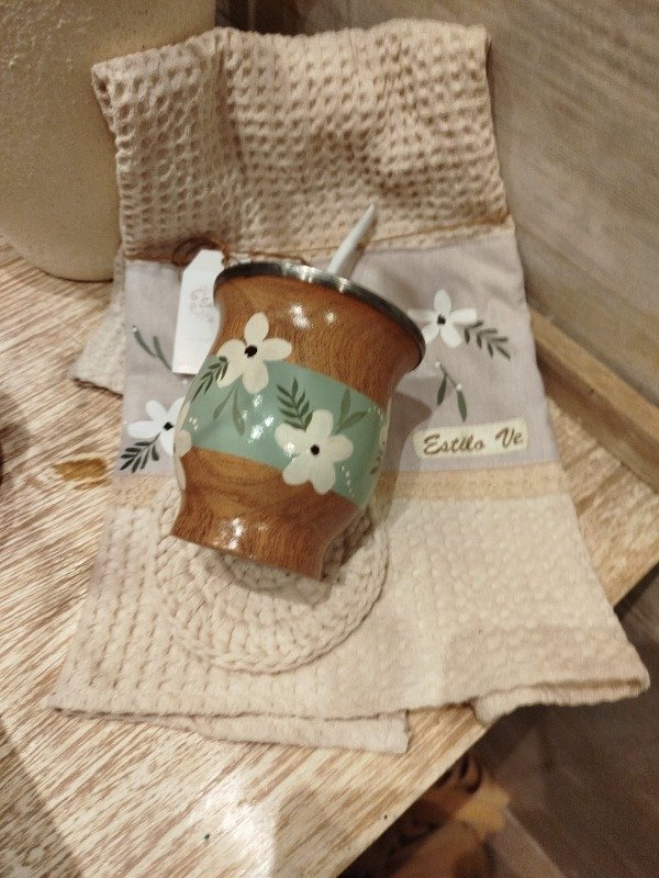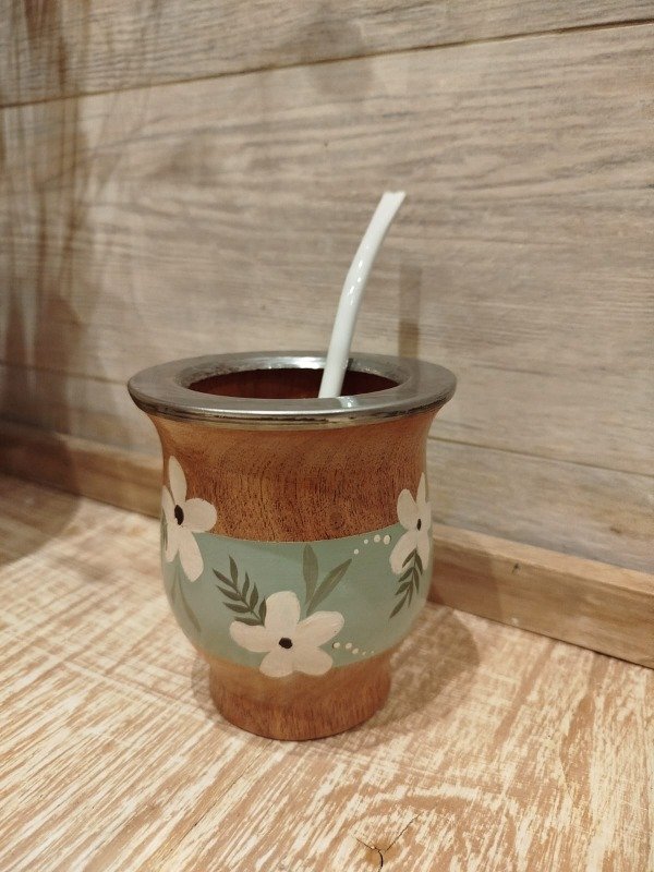 • Mate de algarrobo, modelo CAMIONERO, con virola de acero inoxidable y bombilla de aluminio a tono.